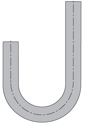 Nesting mandrel bends is as simple as adding or subtracting the tube O.D. from the CLR (centerline radius). A 2.00" O.D. U bend with a 3.0" CLR. will nest inside a 2.0" J bend with a 5.0" CLR. The illustration shows the measurement from the inner radius to the outer radius.